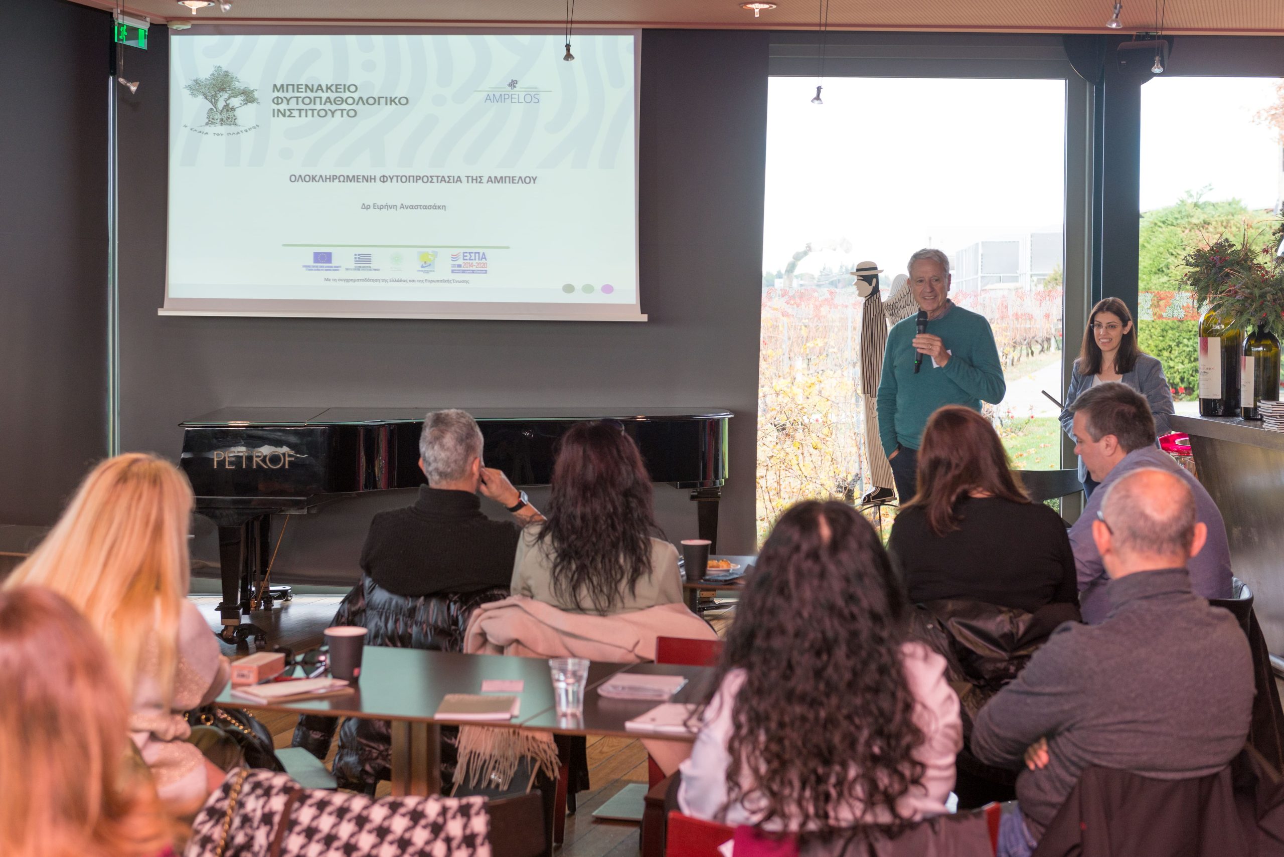 Την Τρίτη 10 Δεκεμβρίου 2024 στο πλαίσιο του έργου πραγματοποιήθηκε με μεγάλη επιτυχία στις εγκαταστάσεις του Κτήματος Γεροβασιλείου (Επανομή, Θεσσαλονίκη) ημερίδα με θέμα: «Ολοκληρωμένη Φυτοπροστασία σε καλλιέργειες αμπελιού».